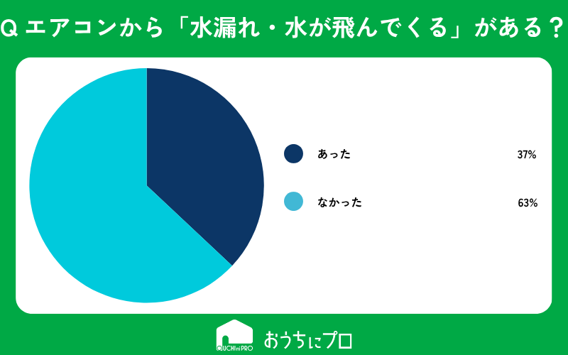 - ・エアコン本体から「水漏れ」「水が飛んでくる」といった経験をした人は37%いる。