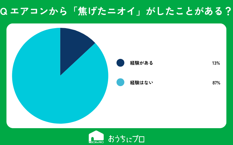 - ・「エアコン本体から焦げたニオイを感じたことがある」と回答した人は13%。。