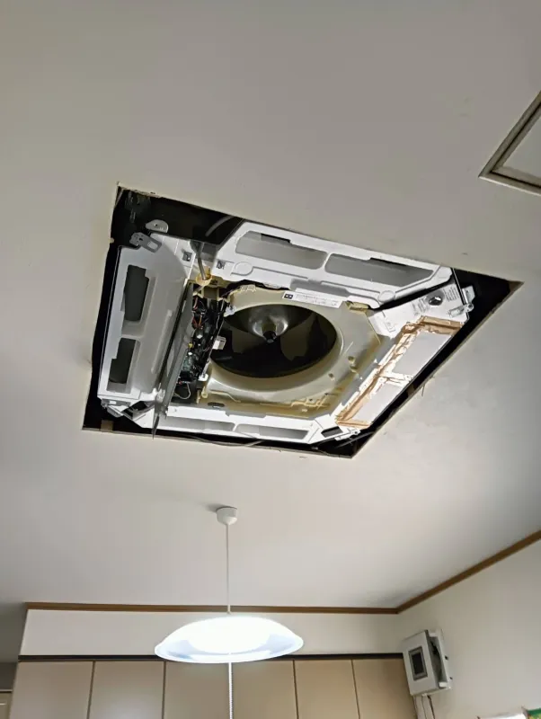 エアコンは長年の汚れで、真っ黒な汁が出てきていました。
