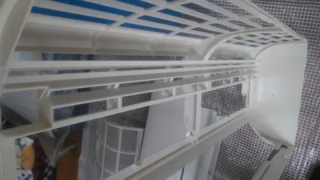 カバーやフィルターをお風呂場で洗浄します。(お風呂場またはベランダをお借りして、水で洗い流します。)