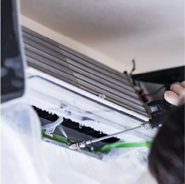 一般壁掛け型のエアコンのクリーニングが対象となります。エアコン本体を分解しカバー類など裏についているカビなども水洗いいたします。本体は養生をし専用薬剤で付け置きし、汚れを浮かした上高圧洗浄機で一気に洗い流します。洗浄後は組み立て後内部を乾燥させて終了となります。