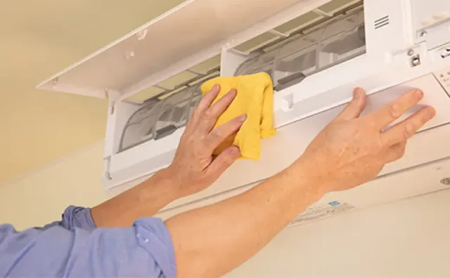 エアコンの内部・部品等の拭き掃除を行います。