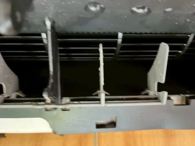 前面パネル、フィルター、ルーバーなどの部品を取り外し、内部の熱交換器やファンにアクセスできる状態にします。
