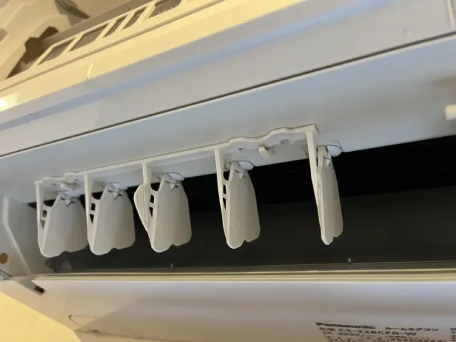 ・取り外しができない、動作確認が出来ない、エアコン本体と左右壁の隙間が手のひら入らない、