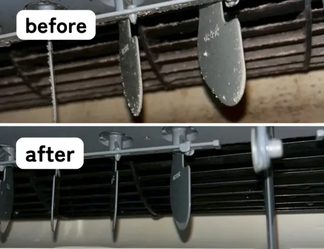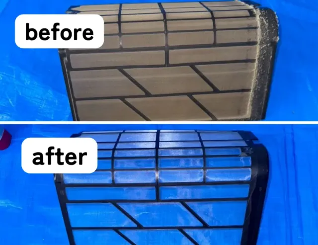 分解洗浄+高圧洗浄で、長年蓄積したカビやホコリを徹底的に洗い流します。