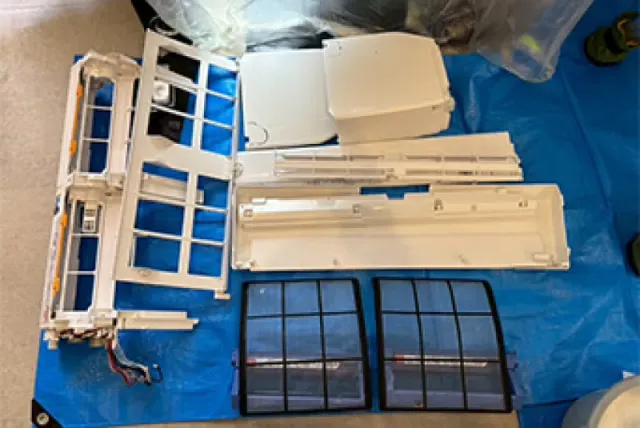 通常の高圧洗浄はもちろん、パーツを細かく取り外す「完全分解洗浄」のオプションもご用意しているため、送風ファンやドレンパンの奥に潜む頑固なカビやホコリも逃さず除去可能です。