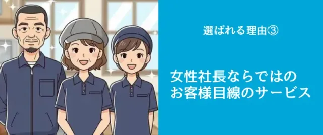 女性ならではのきめ細やかな気配りと丁寧な対応で、初めての方や一人暮らしの方からも高い評価をいただいています