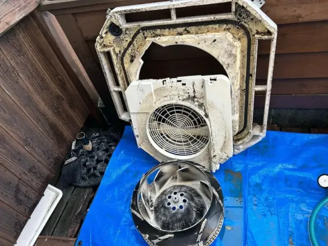 YouTubeを見て自分でエアコンの洗浄をしようと思いましたが、実際の作業を見ているとエアコンのカバーを外すのが難しそうで、養生などもしっかりしないといけなくて、やっぱりエアコンの洗浄はプロに依頼するべきだと思いました。