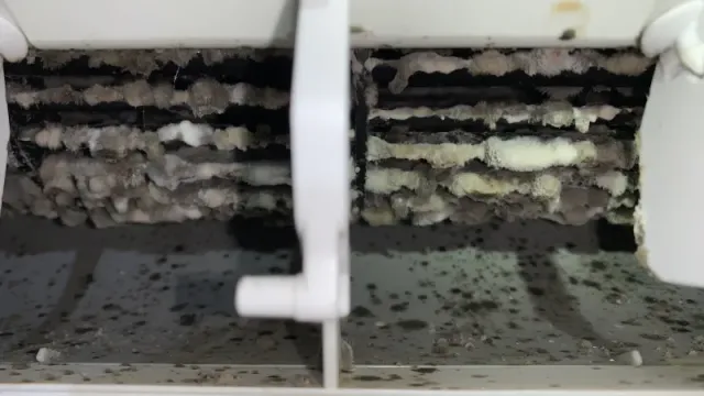 それにより、エアコン停止時に羽が完全に閉まりきらなくなったり、動きが悪くなる可能性がございます。