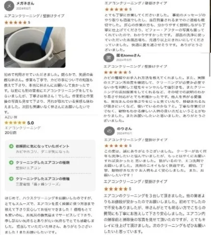 おうちにプロでは口コミこそございませんが、他のポータルサイトではお客様から心温まる口コミを多数頂戴しております。