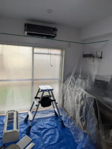 エアコンと周辺の養生 ~濡らしたり汚したりしないように必ず新品のビニールでしっかり養生いたします~