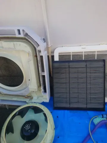 【年に1度はクリーニングを】1年間フルで稼働する業務用エアコンは埃汚れが、付着しやすく内部がカビやすいです綺麗にクリーニングを行い、快適なオフィスを