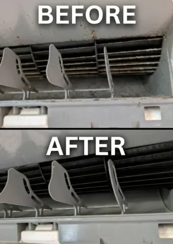 吹き出し口を覗いて見える「黒い点々」は、家族の健康を脅かすカビの温床です。当店では、独自配合のエコ洗剤と専用の高圧洗浄機を用い、目に見えないドレンパンの奥や送風ファンの裏側まで徹底的に除菌・洗浄します。