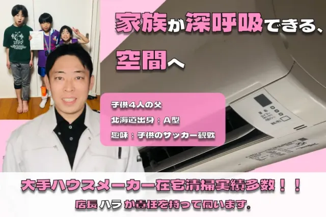 4児の父として、ご家族が安心して過ごせる空気づくりを大切にしています。見えないカビや汚れまでしっかり洗浄いたします。