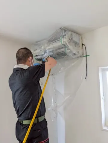 エアコンの下は施工場所になりますので脚立を立てれるスペースの確保をお願いいたします。家具等の移動の出来ない場合はご連絡下さい。