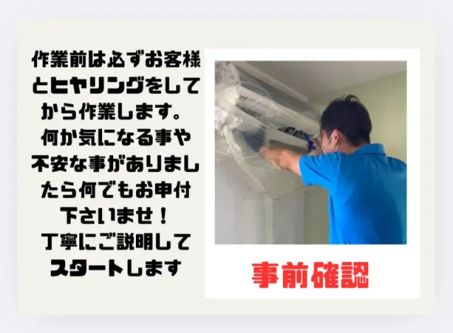 事前のやり取りの段階で通常エアコンでのお申込②対してお掃除エアコンだった場合はお掃除エアコンの代金に変更となります。