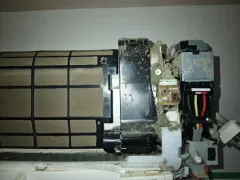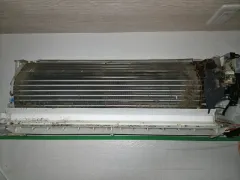パナソニックのフィルター自動お掃除機能付きエアコンでした。お台所に近く、油煙を吸い込み、ほこりが大量に付着したようです。