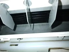 パナソニックのフィルター自動お掃除機能付きエアコンでした。お台所に近く、油煙を吸い込み、ほこりが大量に付着したようです。 お掃除ユニットも分解、エ...