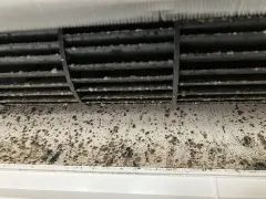 熱交換器は埃とカビが付着します。 カビが発生するとニオイの原因となります? 熱交換器はどうしても結露が発生してしまうのでカビが繁殖しやすい環境になっ...
