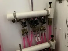 パーツはすべて分解します。 本体に残る熱交換器は通常通り、高圧洗浄でキレイにします。 壁掛け同様、熱交換器やファンが重点的に汚れています。 ドレン...