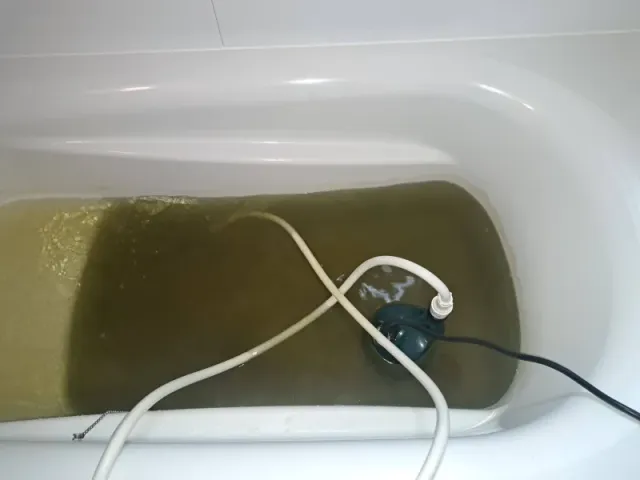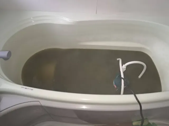 洗浄後に大量の汚れが出てきて、濁っていましたが、汚れが出なくなるまで、無色透明になるまですすぎを繰り返しました。いつでもお風呂に入れる状態で終了します。