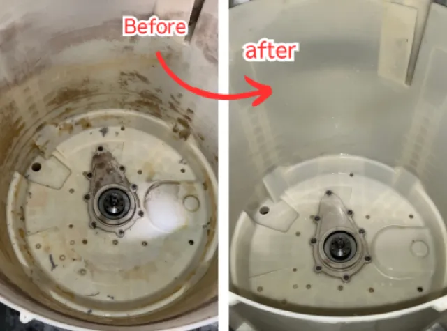 市販の洗濯槽クリーナーでは届かない部分。