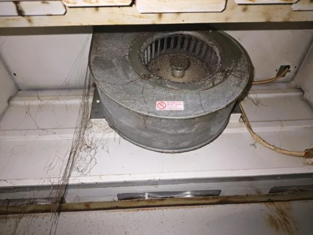 お台所に近く、油煙を吸い込み、そこにほこりが大量に付着してしまった様です。ビフォー。