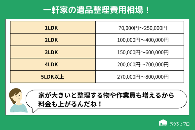 ここからは、一軒家の遺品整理を業者に依頼する場合の費用相場を詳しく紹介します。