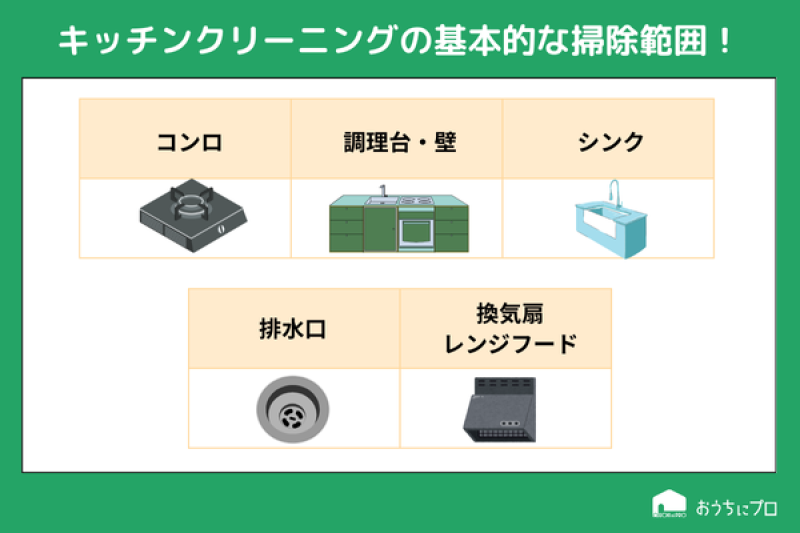 キッチンクリーニングの基本的な掃除範囲は?