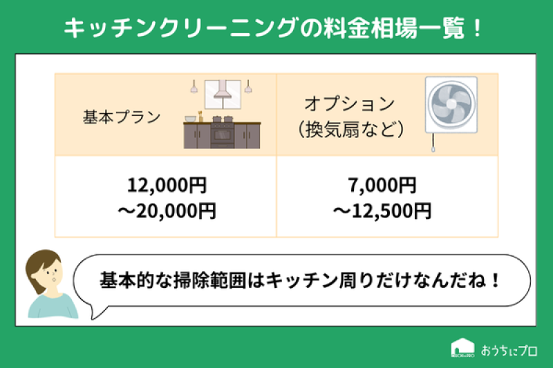 - ・レンジフードや換気扇の掃除を依頼する場合は7,000~12,500円程度で、基本的にはオプションとなる