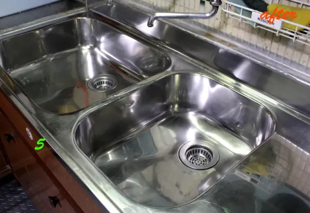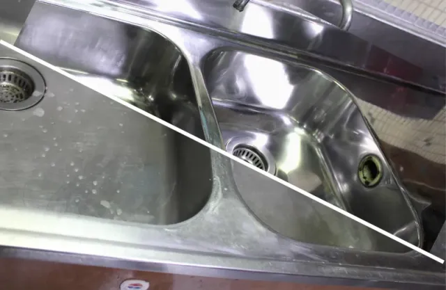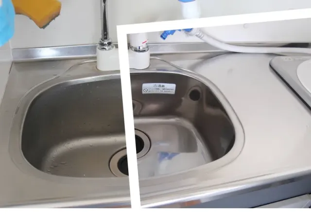 シンク以外にも収納扉や扉のない棚、カランなど磨き上げます。