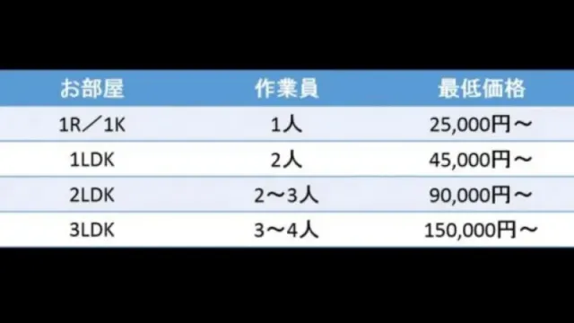 ※上記お値段は基本設定のため、お部屋の内容物及び物量、一軒家、マンションタイプ等の場合は前後いたします。