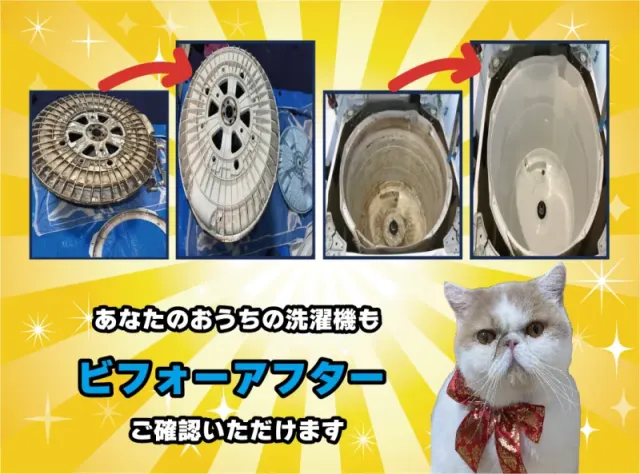 「プロの手で丁寧に分解洗浄。見えないカビや汚れを徹底的に除去し、安心して清潔な洗濯を楽しんでいただけます。」