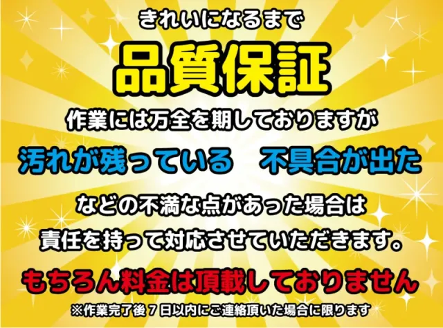 ※オプションの有無、汚れ具合や設置状況によりお時間は多少前後いたします。