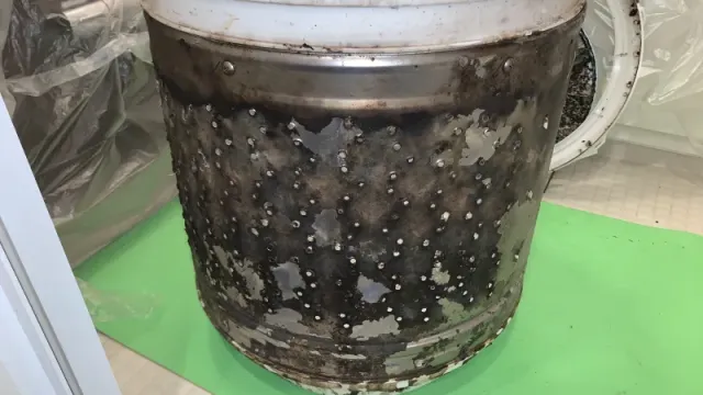 可能な限り洗濯槽を取り外し、浴室などで洗浄させていただきますが、ボルトが錆び付いていたり、汚れが固着して洗濯槽が外せないケースが稀にございます。