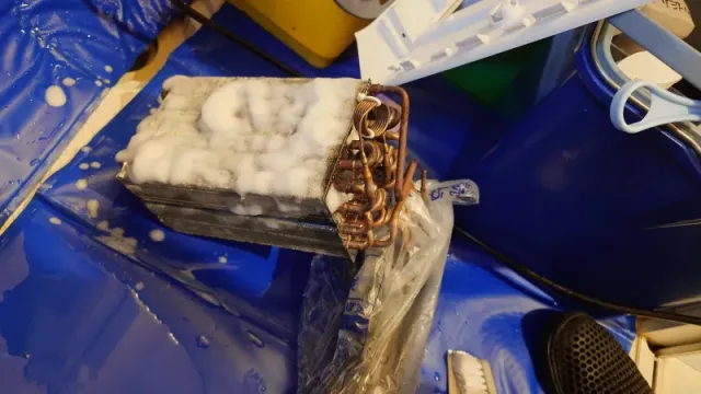 分解した各パーツ(ドラム、ダクト、ヒートポンプユニットなど)を、専用の洗剤と高圧洗浄機を用いて、隅々まで丁寧に洗い上げます。カビや洗剤カス、蓄積したホコリを根こそぎ除去します。